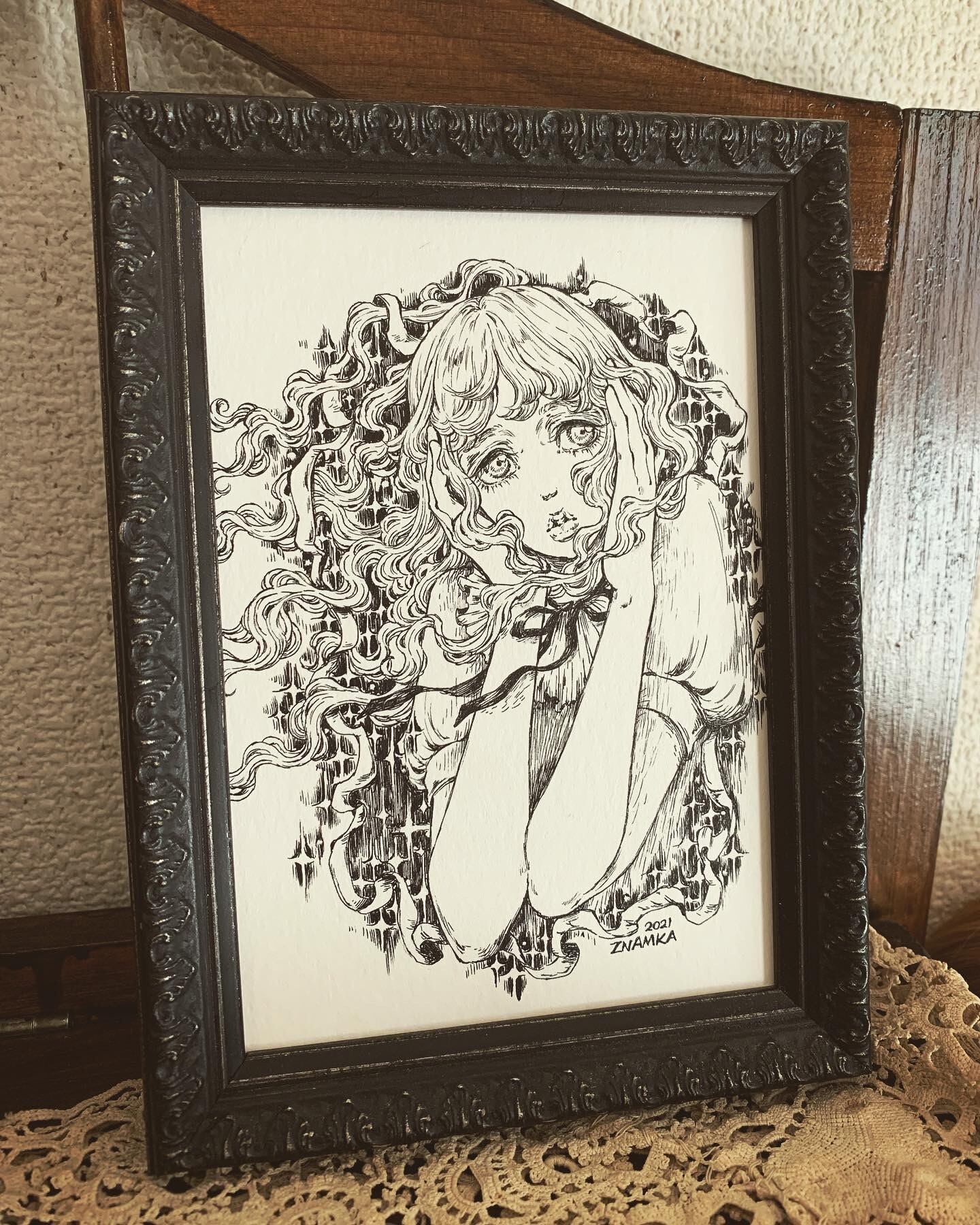 主張の強いきらきらに埋もれる悩める少女のペン画です。