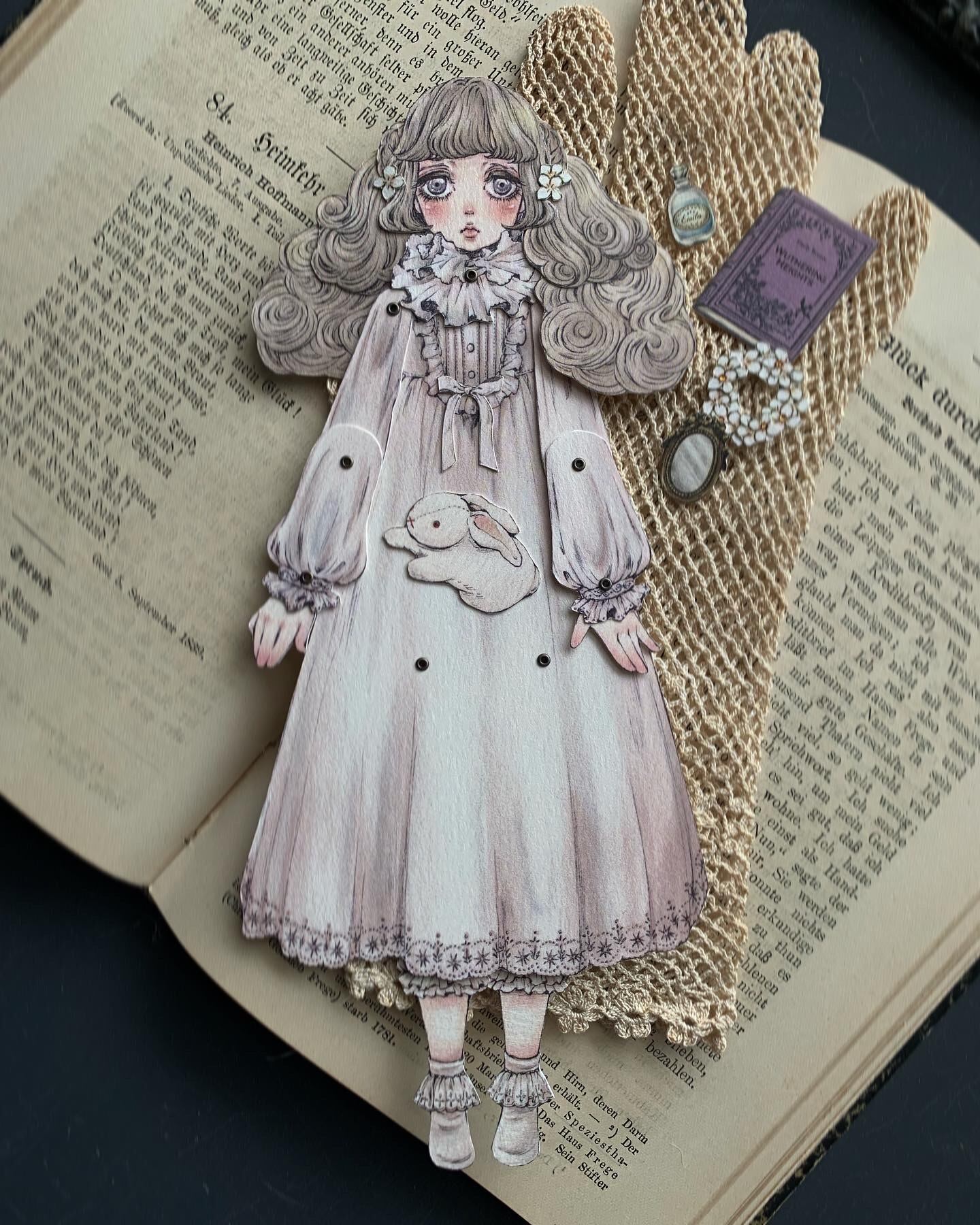 ・ペーパードールおよび付属パーツは素材が紙ですので、動かす際はくれぐれもそっと行ってください。